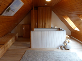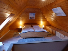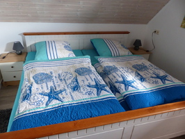 In beiden Schlafzimmern stehen Doppelbetten. Im oberen Schlafzimmer(Spitzboden) befindet sich zusätzlich ein Kinderreisebett.